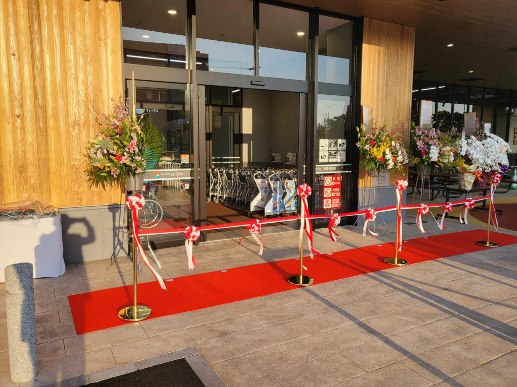 商業施設オープニングセレモニーにて7名のテープカットの会場設営